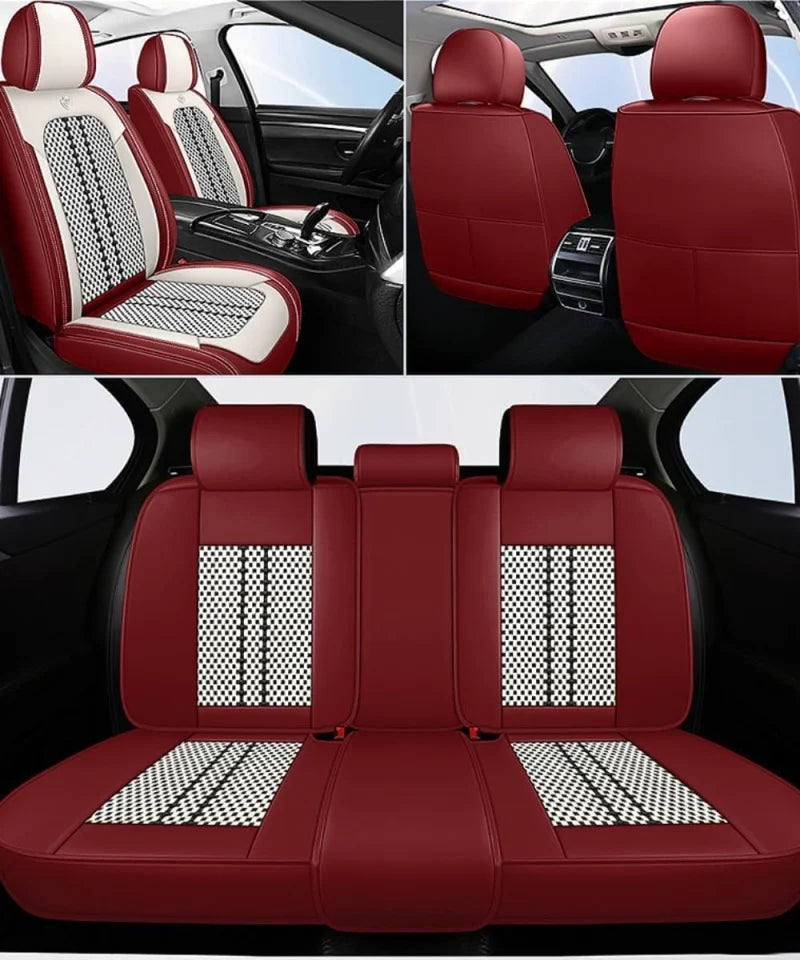Este un produs de o calitate Premium, cu un design deosebit, care va va proteja materialul scaunelor, sporind simultan confortul interior al autovehiculului. Material : Piele Ecologica de cea mai buna calitate , calitatea 1 (material special pentru tapiterii auto) Setul contine : 2 huse scaune fata,Tetiere scaune fata , 2 huse bancheta, 3 huse tetiere spate; Husa bancheta spatar este fractionata Cotiera spate ramane complet functionala (in cazul in care masina este prevazuta cu cotiera spate) Scaunele fata sunt acoperite in totalitate : Fata,Spate,Laterale scaun cu zona dedicata airbagului din scaun Pe spatele scaunelor fata husa este prevazuta si cu buzunar pentru depozitare