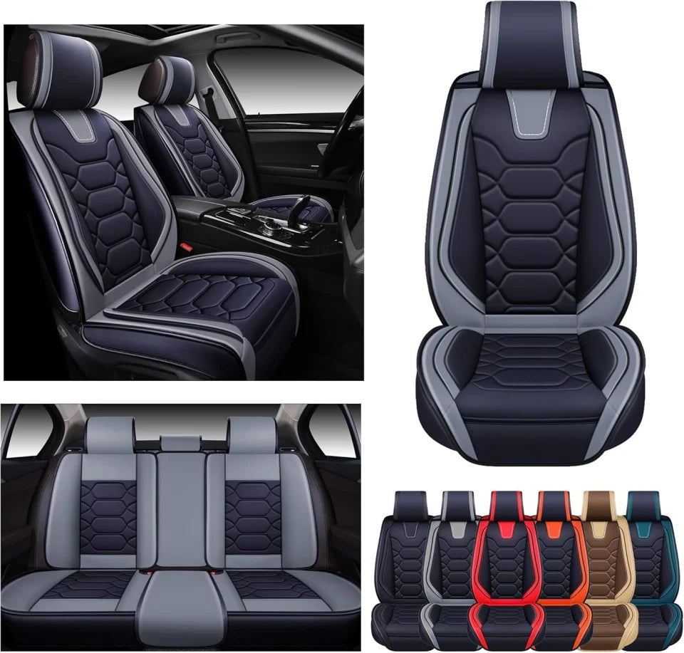 Este un produs de o calitate Premium, cu un design deosebit, care va va proteja materialul scaunelor, sporind simultan confortul interior al autovehiculului. Material : Piele Ecologica de cea mai buna calitate , calitatea 1 (material special pentru tapiterii auto) Setul contine : 2 huse scaune fata,Tetiere scaune fata , 2 huse bancheta, 3 huse tetiere spate; Husa bancheta spatar este fractionata Cotiera spate ramane complet functionala (in cazul in care masina este prevazuta cu cotiera spate) Scaunele fata sunt acoperite in totalitate : Fata,Spate,Laterale scaun cu zona dedicata airbagului din scaun Pe spatele scaunelor fata husa este prevazuta si cu buzunar pentru depozitare