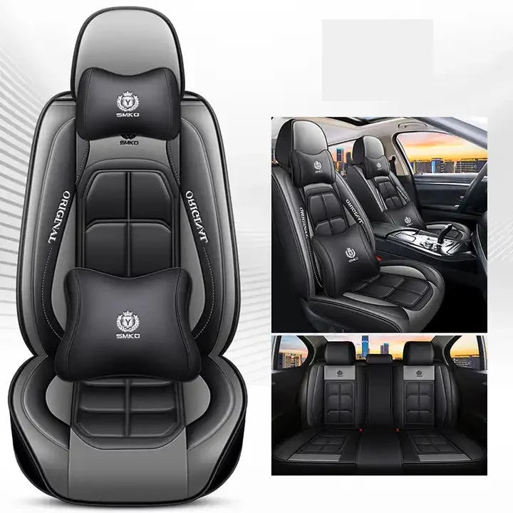 Este un produs de o calitate Premium, cu un design deosebit, care va va proteja materialul scaunelor, sporind simultan confortul interior al autovehiculului. Material : Piele Ecologica de cea mai buna calitate , calitatea 1 (material special pentru tapiterii auto) Setul contine : 2 huse scaune fata,Tetiere scaune fata , 2 huse bancheta, 3 huse tetiere spate; Husa bancheta spatar este fractionata Cotiera spate ramane complet functionala (in cazul in care masina este prevazuta cu cotiera spate) Scaunele fata sunt acoperite in totalitate : Fata,Spate,Laterale scaun cu zona dedicata airbagului din scaun Pe spatele scaunelor fata husa este prevazuta si cu buzunar pentru depozitare Cele 4 pernute din fotografii NU SUNT INCLUSE