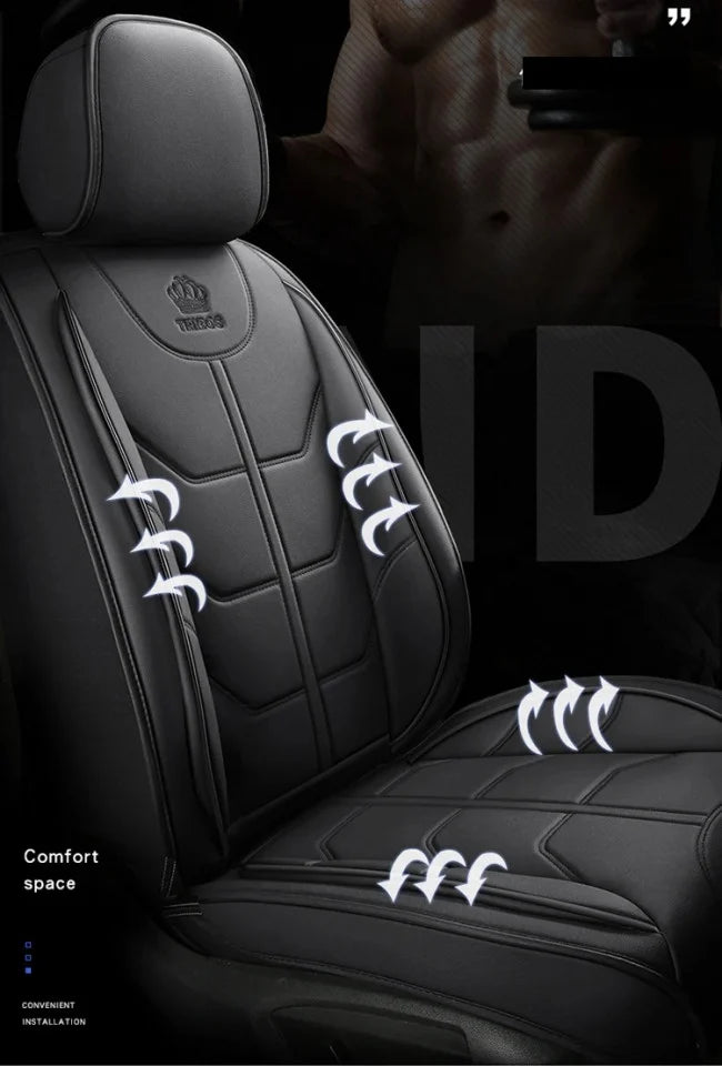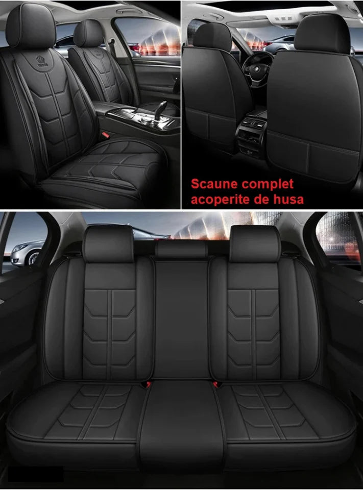 Este un produs de o calitate Premium, cu un design deosebit, care va va proteja materialul scaunelor, sporind simultan confortul interior al autovehiculului. Material : Piele Ecologica de cea mai buna calitate , calitatea 1 (material special pentru tapiterii auto) Setul contine : 2 huse scaune fata,Tetiere scaune fata , 2 huse bancheta, 3 huse tetiere spate; Husa bancheta spatar este fractionata Cotiera spate ramane complet functionala (in cazul in care masina este prevazuta cu cotiera spate) Scaunele fata sunt acoperite in totalitate : Fata,Spate,Laterale scaun cu zona dedicata airbagului din scaun Pe spatele scaunelor fata husa este prevazuta si cu buzunar pentru depozitare Cele 4 pernute din fotografii NU SUNT INCLUSE