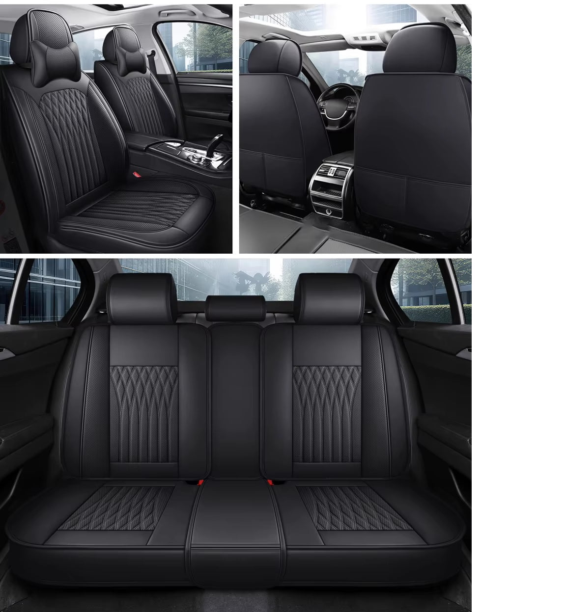 Este un produs de o calitate Premium, cu un design deosebit, care va va proteja materialul scaunelor, sporind simultan confortul interior al autovehiculului. Material : Piele Ecologica de cea mai buna calitate , calitatea 1 (material special pentru tapiterii auto) Setul contine : 2 huse scaune fata,Tetiere scaune fata , 2 huse bancheta, 3 huse tetiere spate; Husa bancheta spatar este fractionata Cotiera spate ramane complet functionala (in cazul in care masina este prevazuta cu cotiera spate) Scaunele fata sunt acoperite in totalitate : Fata,Spate,Laterale scaun cu zona dedicata airbagului din scaun Pe spatele scaunelor fata husa este prevazuta si cu buzunar pentru depozitare Cele 4 pernute din fotografii NU SUNT INCLUSE